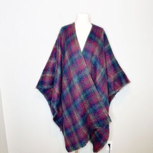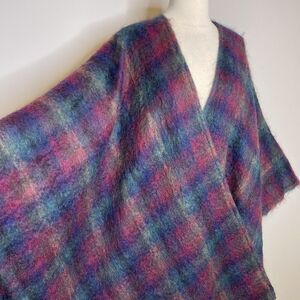 Vintage 60s Therese Ahrens Mohair Shawl RARE Dark Rainbow Plaid Fuzzy Ruana