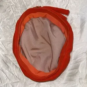 Vintage 60s Tomato Red Velvet Beret with Gold Buckle Detailing