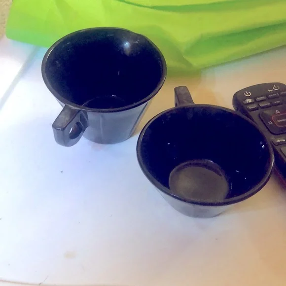 Black glass creamer and one cup No cracks y HS very nice pattern on bottom No cracks or chips