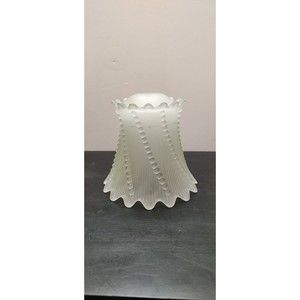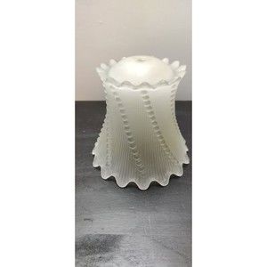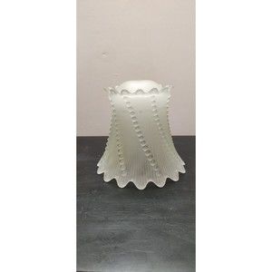 Add a touch of vintage charm to your boudoir with this frosted glass lamp shade. Measuring 6.25 inches in diameter, this clip-on shade features a scalloped edge and a beautiful swirl dot pattern that will complement any decor. Made of high-quality glass, this original piece is perfect for collectors and enthusiasts alike. The bell-shaped shade is designed to fit most lamps and lighting fixtures, and the white color adds a touch of elegance to any room. This lamp shade is perfect for adults who appreciate vintage decor and collectibles.