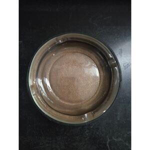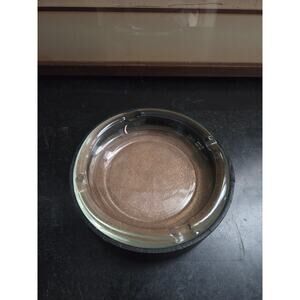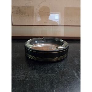 Vintage 6.25" Glass & Black Leather Wrapped Ashtray Gold Stripe Mid Century