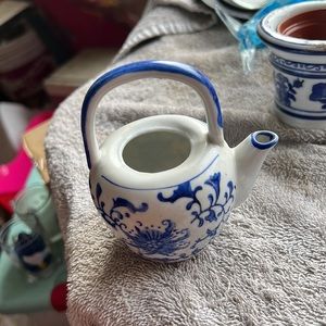 2 saucers 1 small vase and miniature tea pot No cracks or chips