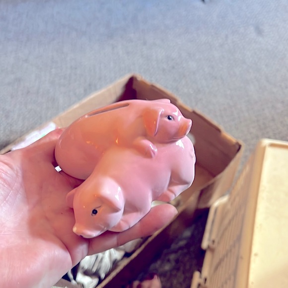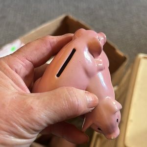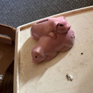 2 pigs bank Ceramic no chips or cracks Pretty unique