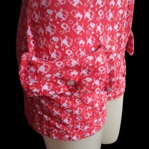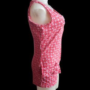 Vintage 6/8 Women's Romper 1of1 Red Sleeveless Fish Print 1970's Front Zipper