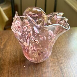 Vintage ’69 Studio Art Glass Connie Christopher Handkerchief Vase pink
