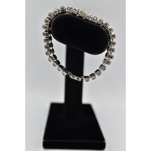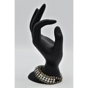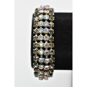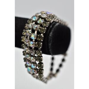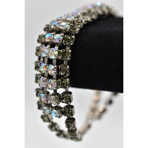 Vintage 7" Crystal Bracelet Aurora Boreal Linked Gray Chunky Silver 1960s BinAW
