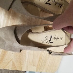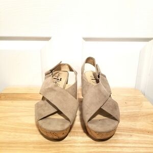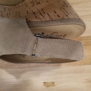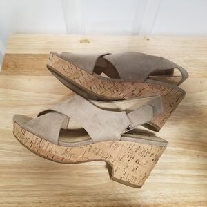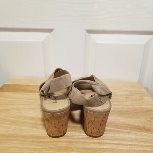 Beige Faux suede wedges cork heels Great condition 3" heels Velcro closure Sz 8