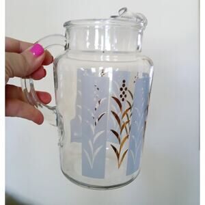 #MCMGlassware #VintagePitcher #FrostedGlass #MidCenturyModern #RetroGlassware #BlueGoldGlass #VintageKitchen #BarwareStyle #CocktailPitcher #VintageHomeDecor #MCMStyle #GlassCollectibles #RetroPitcher #VintageBarware #MidCenturyFinds