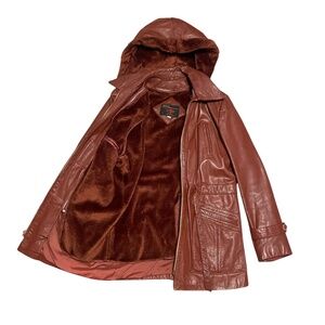 Vintage 70/80s Fantastic International of CA Leather Coat w/ Hood & Liner Sz 40