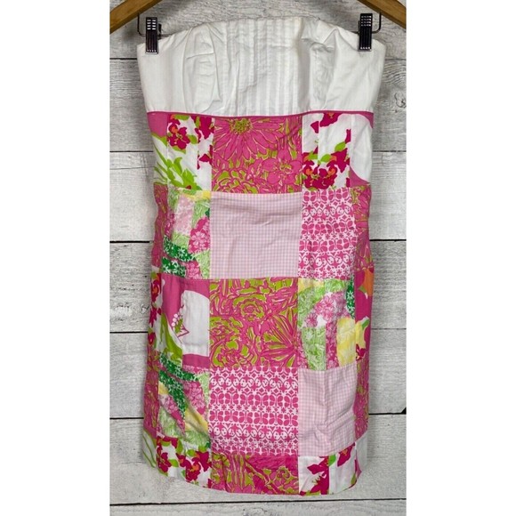 Vintage 70/80's Lilly Pulitzer Strapless Dress 0 Franco Patch Quilt…