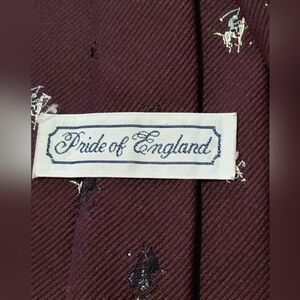 Vintage 70/80s Pride Of England Brown Silk Poly Embroidered Polo Player Motif
