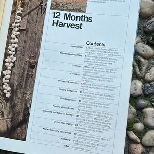 Vintage 70s softcover book "12 Months Harvest" a guide to preserving, canning, freezing, smoking, drying, growing and harvesting your own food and herbs as well as making your own cheese, cider, soap, and grinding your own grain. Packed full of useful information on connecting with the "old ways" and living off the land year-round
