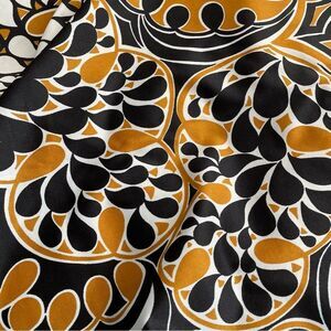Vintage 70s 1971 Ameritex Co Polyester Mod Fabric Black Golden Tan White 66x64”