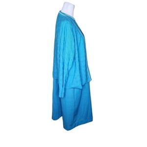 Vintage 70s 2 Piece Dress Jacket Set Womens 3XL Turquoise Blue Mod Polyester Vol