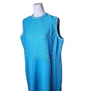 Dress is a sleeveless polyester knit with a textured top, solid bottom