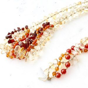 Vintage 70s 80s Amber Citrine Carnelian Necklace Bracelet Set