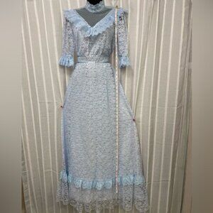 Vintage 70’s / 80’s Blue Lace High Collar Dress Vintage Size 9/10 Union Label