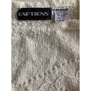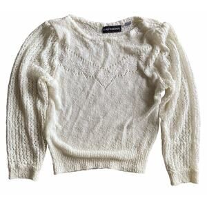 Vintage 70s early 80s Captions brand bohemian/cottage ivory/cream color thin knit acrylic sweater. Slightly cropped. Loose knit, somewhat sheer poet sleeves. Sweet embroidered details at chest. Will best fit a size S. Will work for a XS too. Please refer to the measurements below. No flaws found. Great shape. Questions? Please ask. All sales final. No returns accepted. No refunds. Thanks so much for looking.