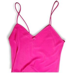 Vintage 70s 80s Christian Dior Pink Midi Slip Dress Flower Pearl On Chest