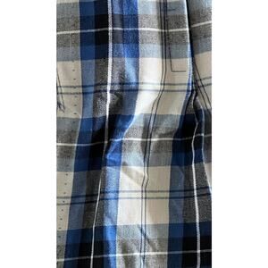 Vintage 70s 80s Curtains Blue Ivory Retro Plaid Pinch Pleat Panels Pair 34x50