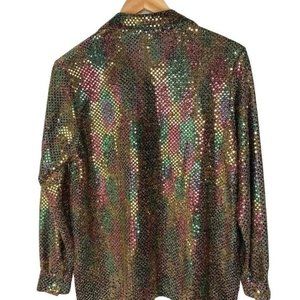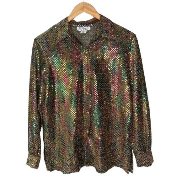Vintage 80s 90s made in USA Eva Laura women’s button-down blouse sequence gold multicolored