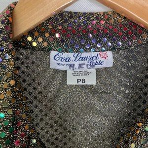 Vintage 70s 80s Eva Laurel Womens blouse sequins gold multiple size 8P USA Made
