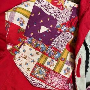 Vintage 70s 80s Frostline Kit Red Floral Patchwork Retro Boho Jacket XS