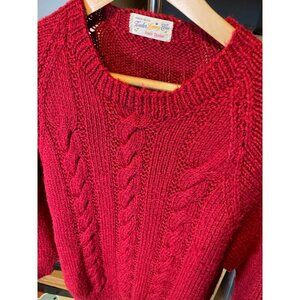 Vintage 70s 80s Handknit Cable Knit Red Sweater