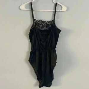 Vintage 70s 80s Lingerie Satin Sexy High Leg With Lace Black Size Medium M