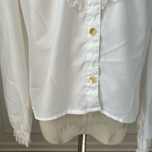 Vintage 70s 80s Mock Neck Ruffle Lace White Blouse S M