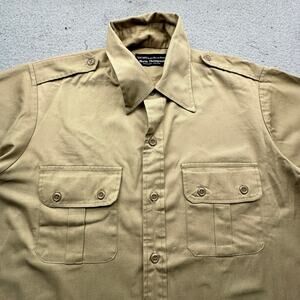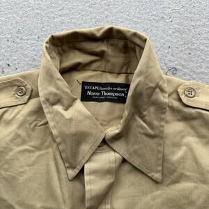 Vintage 70s 80s Norm Thompson Twill Safari Pocket Button Up Shirt Mens Large Brown Khaki