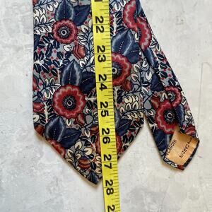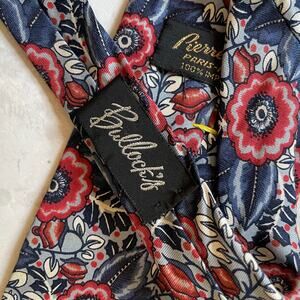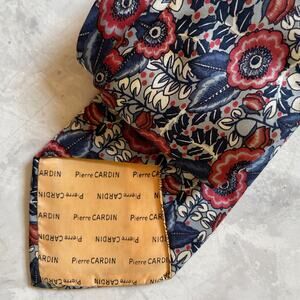 Beautiful vintage Pierre Cardin silk tie featuring a bold red and blue floral print. Crafted from 100% imported silk with a smooth handfeel and elegant drape. Sold originally at Bullocks department store in Los Angeles — a rare collector’s piece of retro menswear.