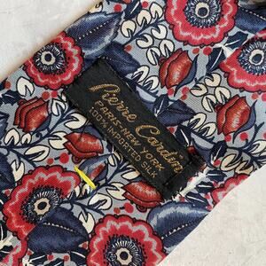 Vintage 70s 80s Pierre Cardin 100% Silk Floral Blue Red Neck Tie 56" Bullocks
