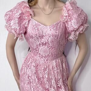Vintage 70s 80s Pink Puff Sleeve Midi Dress Princess Union Made Coquette XXS