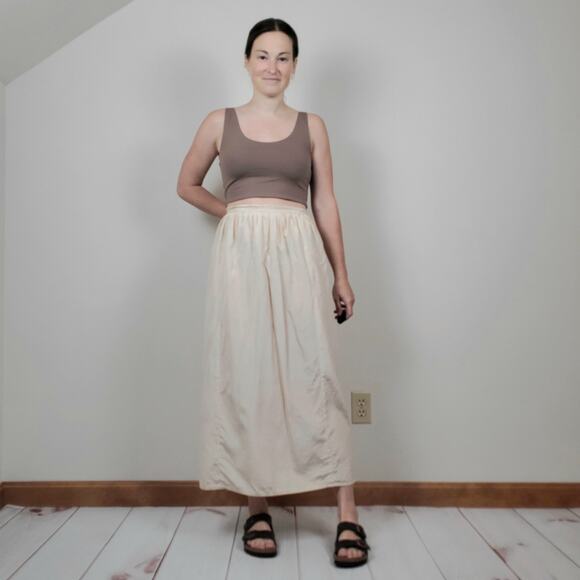 Vintage 70s 80s Silk Cotton Midi Prairie Skirt Beige Cream 36"