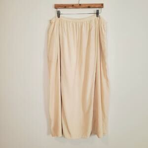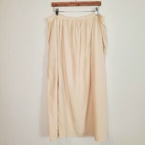 Vintage 1980s or 1990s cream / off white or pale beige peasant style A-line midi skirt by Royal Silk. Silk and cotton blend. Midi or maxi length depending on your height. Has pockets. Best fits a 36 inch waist. Great summer to fall transitional piece!
