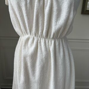 Vintage 70s 80s White Terrycloth Sundress Swim Coverup S M
