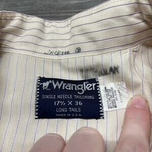 Vintage 70s 80s Wrangler Long Tails Striped Cream Purple Mens 17.5-36 Pearl Snap Western Dress Shirt