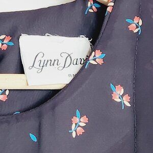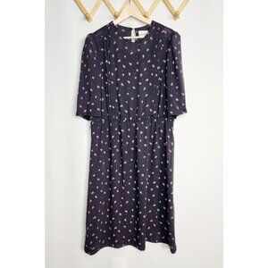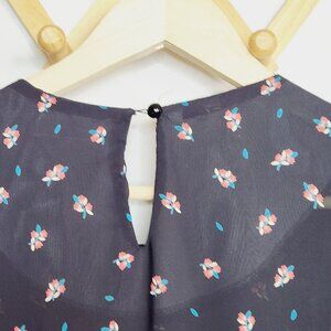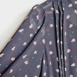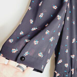 Vintage 70s 80s black floral sheer 3/4 slvs pleat top midi dress M/L grunge