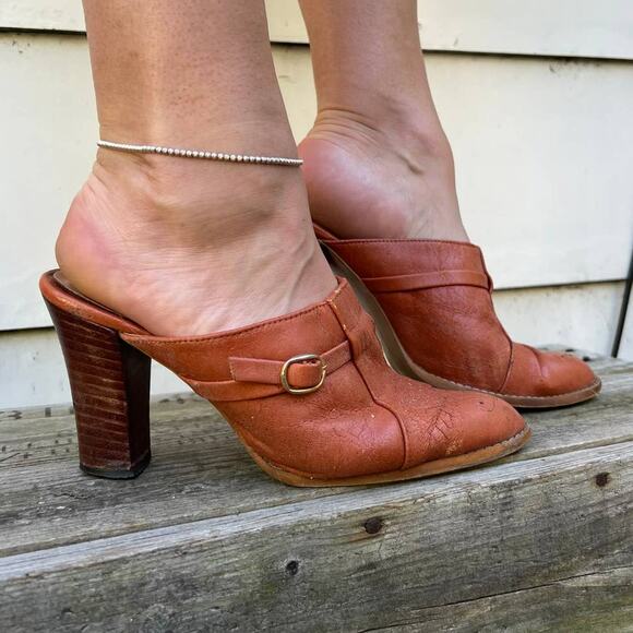 Vintage 70s 80s cognac heeled mules