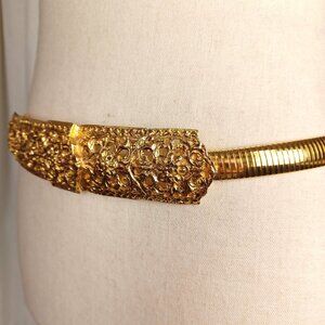 Vintage 70s Accessocraft NYC Floral Omega Chain STRETCH Metal Belt, 26 - 32"