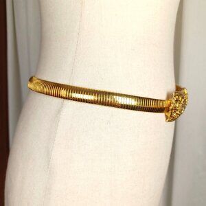 Stunning 70s vintage statement belt with HUGE ornate buckle & STRETCH metal construction!