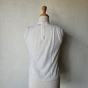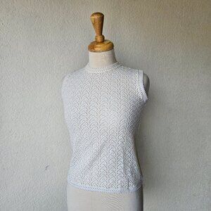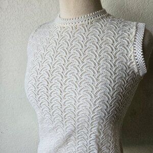 Vintage 70s Acrylic White Vienna Lace Knit Sleeveless Top Shirt Tank M Medium