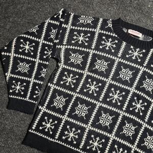 Vintage 70s Adams Apple USA Knit Sweater – Black White Nordic Snowflake