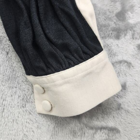 Vintage 70s Adolph Schumann for Lilli Ann Dress Womens M Black Cream Contrast Button Front Elastic Waist Long Sleeve Pullover Fit & Flare Party Goth Dark Academia Union Made in USA