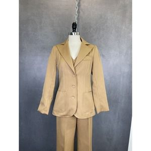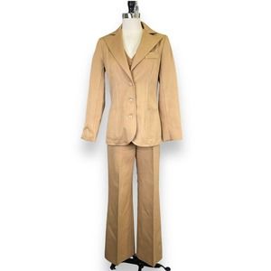 Vintage 70s Alex Colman Tan Three Piece Suit Blazer, vest and pants vintage size 10 please refer to measurements