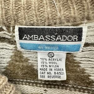 Vintage 70s Ambassador brown diamond argyle sweater size XL