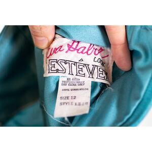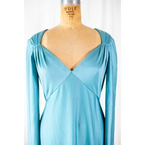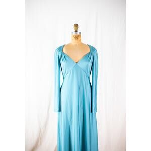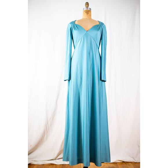 Vintage 70s Aqua Maxi Dress, Eva Gabor by Estevez Formal Evening Gown Retro Med