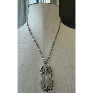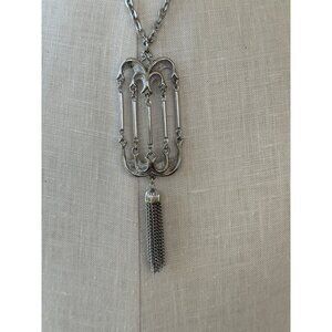 Vintage 70's Articulated Silver tone Tassel Pendant Necklace