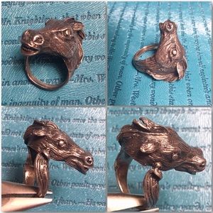 Vintage 70s Artisan SS Horse Head Equestrian Ring